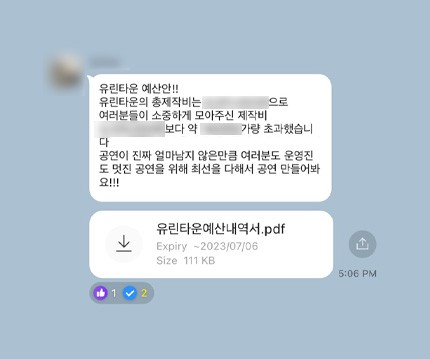 공연에 사용된 모든 제작비를 투명하게 공개하여 단원들이